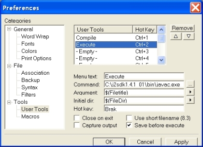 - Do pola „Command” wpisujemy: C:j2sdk1.4.1_01injavac.exe