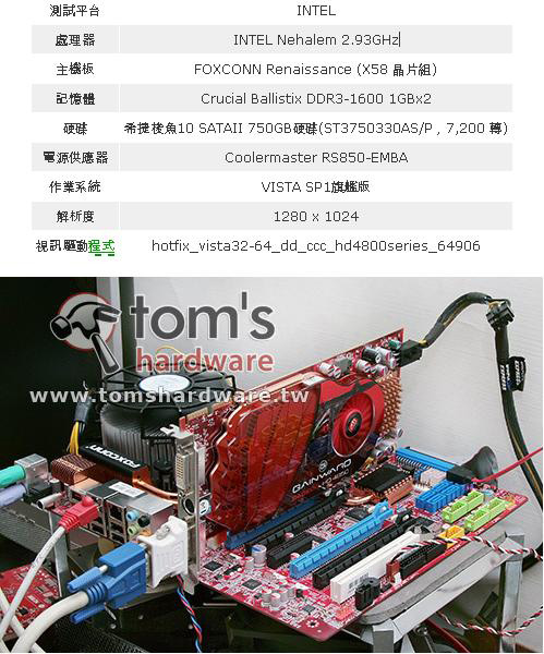 Tajwański oddział Tom's Hardware zaprezentował testy nadchodzących procesorów Intel Nehalem. Procesory były taktowane zegarem 2,93 GHz. Wykorzystano prototypową płytę główną Foxconn z chipsetem X58 oraz najnowszą kartę graficzną ATI HD4850 produkcji Gainward.
