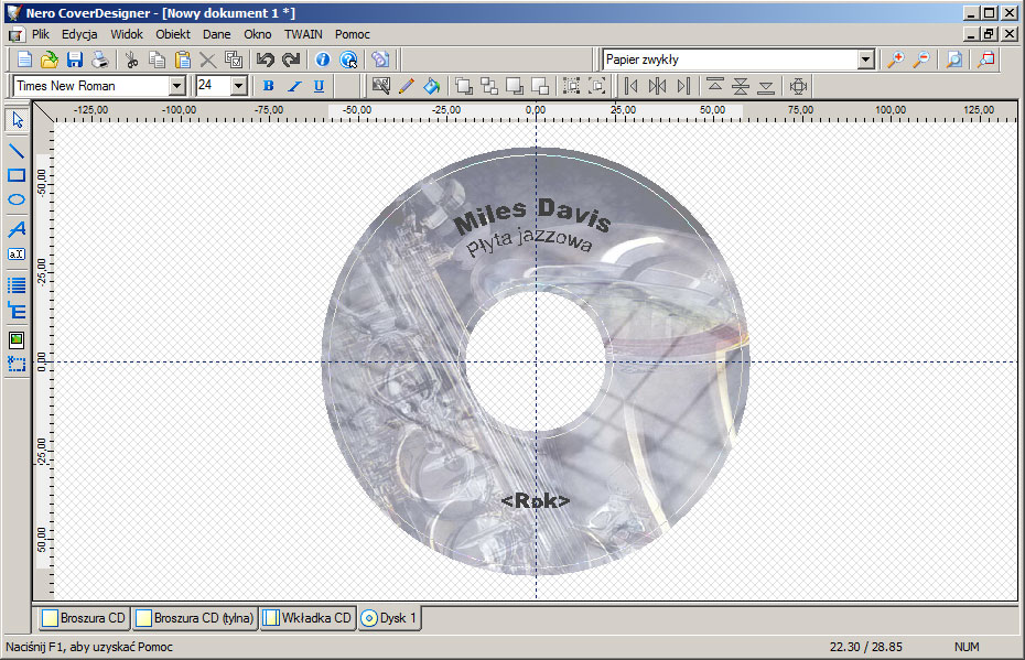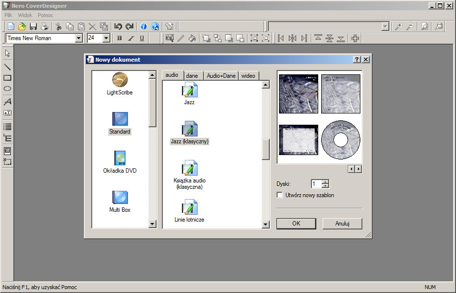 Po nagraniu płyty możemy przygotować okładkę korzystając z programu Nero CoverDesigner. Jest stosunkowo prosty w obsłudze, a dzięki gotowym szablonom umożliwia przygotowanie całkiem ładnych okładek stosunkowo szybko.