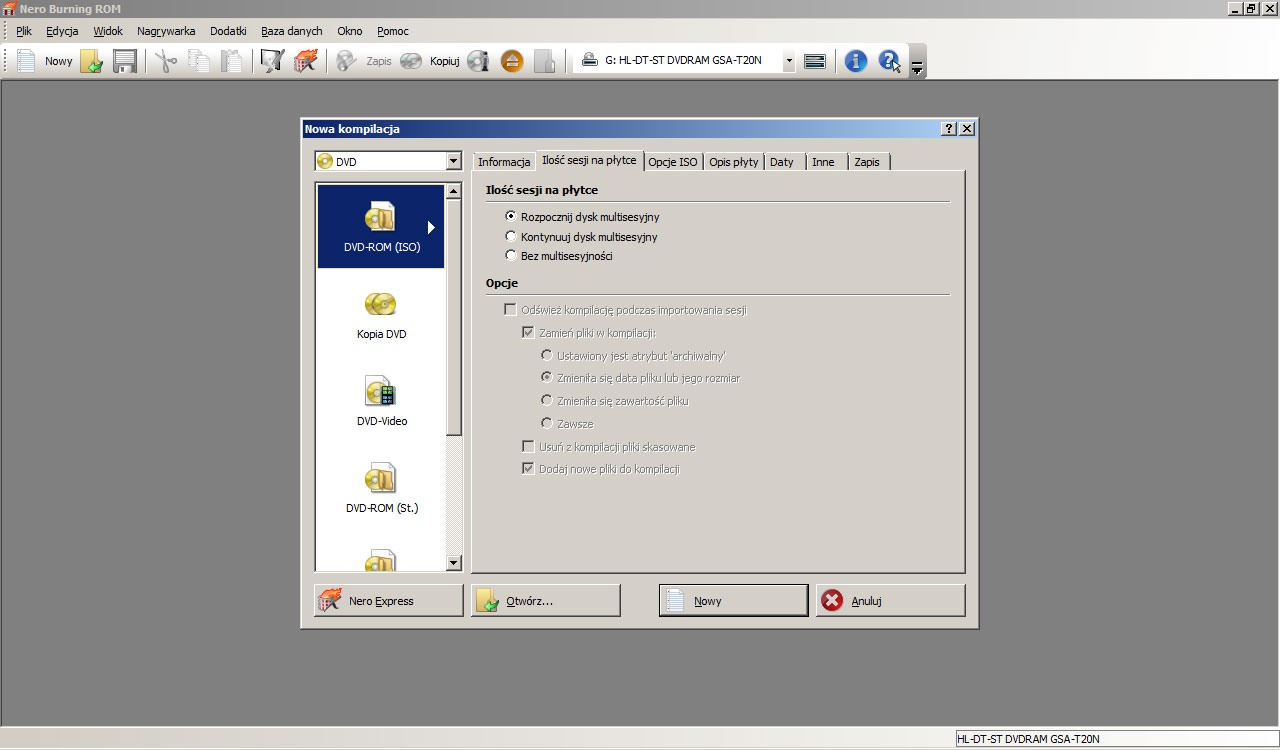 Jakiś czas temu wśród programów do nagrywania pojawił się także Nero Express. Jest to uboższa wersja Nero Burning ROM, a ściślej – rozbudowany kreator pozwalający na nagranie danych, filmów i zdjęć na płytę CD/DVD. Korzystanie z niego jest niemal tak wygodne, jak z Nero Burning ROM, a przy tym szybsze. Nero Express ma jednak istotną wadę: nie mamy tu pełnej kontroli nad procesem zapisywania danych. Na korzyść Nero Buring ROM przemawia także sposób przygotowywania zawartości kompilacji. Tam bowiem dodawanie plików, które mają zostać nagrane, ułatwia wbudowane okienko, dzięki któremu możemy poruszać się po dysku twardym. W Nero Express pliki do zapisania na płycie wskazujemy przy pomocy zewnętrznego okna, przypominającego to do otwierania/zapisywania dokumentów.