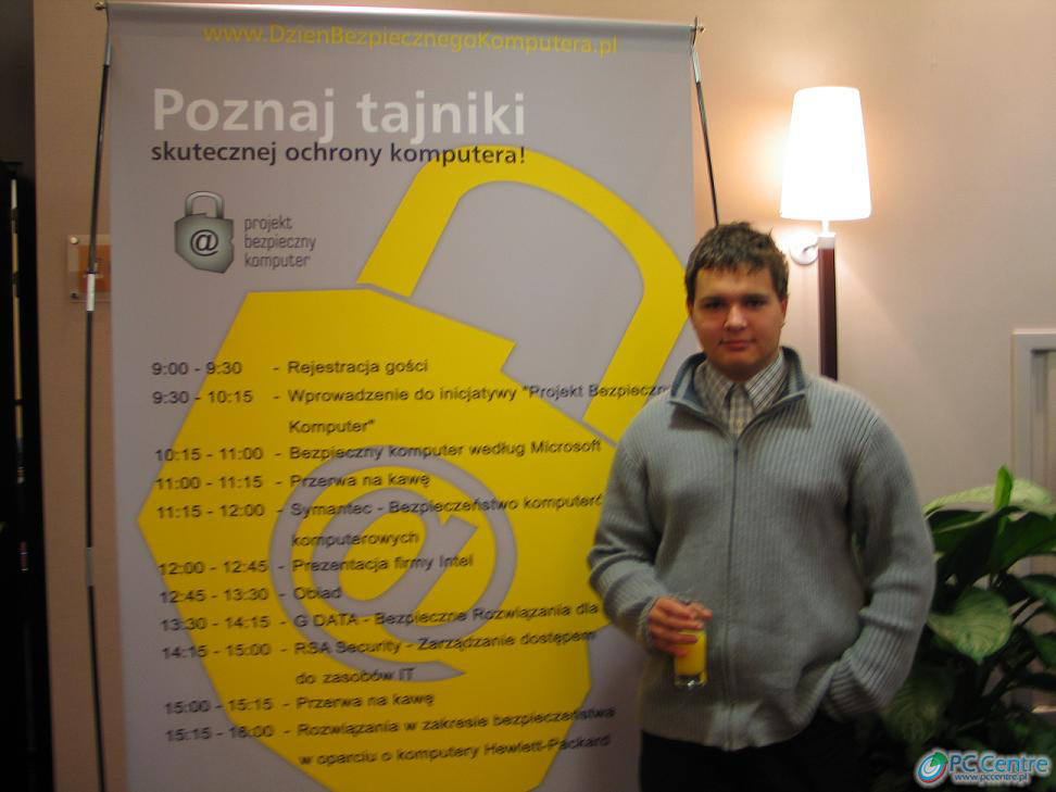 12 października 2004 jest pierwszym "świętem" komputerów w Polsce - od dziś co roku organizowany będzie Dzień Bezpiecznego Komputera. Honorowy patronat nad akcją objął Prezydent RP. Jej celem jest uświadomienie użytkownikom komputerów, na jak wiele niebezpieczeństw są narażeni i jak powinni się ich wystrzegać. Firmy G DATA, Microsoft, Intel, Hewlett-Packard, PKO BP, RSA Security, Symantec i Telekomunikacja Polska zorganizowały cykl dziesięciu seminariów dla partnerów. Trzech redaktorów naszego portalu miało okazję znaleźć się w tym zacnym gronie. Zapraszamy do lektury naszej wspólnej relacji z tego przedsięwzięcia!