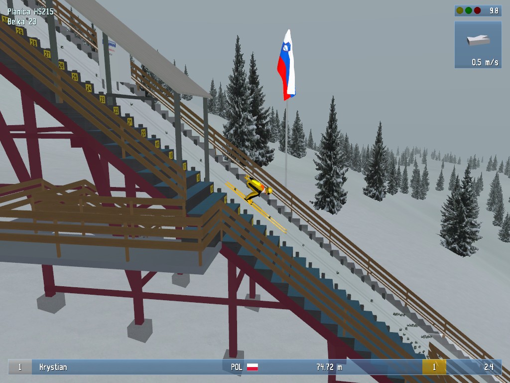 Niestety, to mało prawdopodobne. I nie dlatego, że zainteresowanie sportem w Polsce zmalało po odejściu Adama Małysza, ale dlatego, że Jussi Koskela po prostu się nie postarał. Zacznijmy od tego, że jeśli nie grałeś w żadną odsłonę serii od czasów DSJ 2, to po włączeniu „czwórki” stwierdzisz, że gra kompletnie się nie zmieniła. To złudne wrażenie, bowiem oprawa wizualna poszła bardzo naprzód – przede wszystkim wyzbyto się okropnej pikselozy – ale jednocześnie świadczy to o niewielkim postępie, jaki dokonał się w tej grze jako całości. Po tylu latach bowiem całkowicie uzasadnione są nieco zawyżone oczekiwania, a tymczasem dostajemy to samo, z tą różnicą, że lepsze.