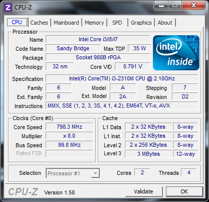 | Procesor: | Intel Core i3-2130M (2,1 GHz, HT, 3 MB cache L3) |