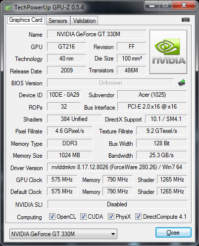 | Karta graficzna: | Nvidia GeForce 330M 1024 MB VRAM |