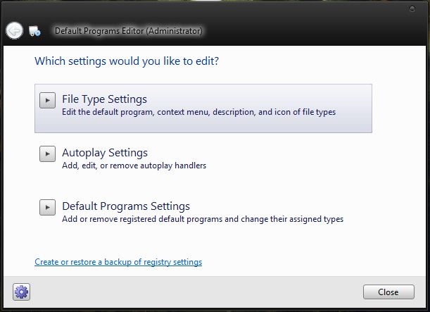 Default Programs Editor jest niewielką aplikacją pozwalającą na ingerowanie we właściwości typów plików systemu Windows. Dzięki niej użytkownik w prosty sposób zmieni ikonkę dla danego rozszerzenia, a także opcje dostępne pod prawym przyciskiem myszy (w tzw. menu konktekstowym). Ponadto aplikacja pozwala na ingerowanie w listę aplikacji wyświetlanych przy autoodtwarzaniu wymiennego nośnika oraz edycję listy programów domyślnych, które Microsoft wprowadził w nowych edycjach Windowsa.