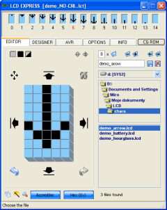 LCD Express to narzędzie dzięki któremu będziemy mogli zaprojektowac napisy dla wyświetlaczy alfanumerycznych LCD ze sterownikiem HD44780. Przejrzysty edytor zawiera zestaw znaków definiowanych przez użytkownika. Aplikacja daje możliwość symulacji multipleksowania pamięci CG RAM.