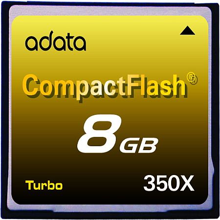 8 lub 16 GB pojemności, 52 MB/s odczyt i 47 MB/s zapis. Takimi danymi może pochwalić się firma A-data, która przedstawiła swój nowy produkt – kartę pamięci CompactFlash Turbo Series 350x.