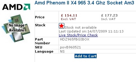 Jeden z brytyjskich sklepów internetowych umieścił na liście oferowanych produktów procesor AMD Phenom II X4 965 BE (wciąż niedostępny), którego cenę ustalono na 177,23 funtów (około 289 dolarów). Jest to o 45 dolarów wyższa kwota niż ta, jaką trzeba zapłacić za model X4 955 BE. Wynika z tego, że Phenom II X4 965 BE nie zastąpi dotychczasowego króla wydajności wśród procesorów AMD, tylko poszerzy ofertę tego producenta.