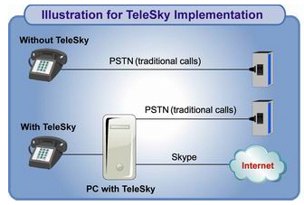 TeleSky pozwala na korzystanie z telefonu przez Internet, używając usług oferowanych przez oprogramowanie Skype. Oznacza to darmowe połączenia internetowe i tanie rozmowy długodystansowe i z komórkami. Standardowa funkcjonalność telefonu nie zostaje przy tym zakłócona, może on nadal korzystać z tradycyjnego publicznego protokołu PSTN.