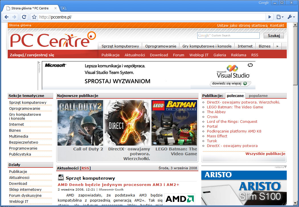 Poniżej przedstawiamy wygląd strony głównej PC Centre w Chrome: