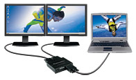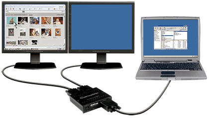 Matrox przedstawił niedawno bardzo ciekawe urządzenie, które umożliwia wyświetlanie obrazu na dwóch monitorach przy użyciu jednej karty graficznej. DualHead2Go oszukuje system operacyjny przedstawiając dwa monitory o rozdzielczości 1280 x 1024 jako jeden 2560 x 1024. Użytkownicy niektórych laptopów mogą pondato użyć tego innowacyjnego urządzenia do stworzenia małym kosztem konfiguracji złożonej z matrycy w notebooku i dwóch dodatkowych monitorów. DualHead2Go pojawi się w sklepach pod koniec bieżącego miesiąca w cenie około 170 dolarów.