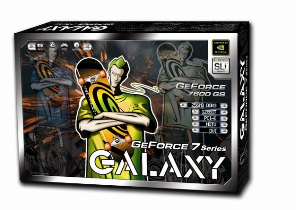 Firma Galaxy wprowadza na polski rynek swoją kartę graficzną opartą na procesorze graficznym GeForce 7600 GS. Nowość wyróżnia się spośród szerokiej już oferty podobnych produktów pamięciami oraz wydajnym, niereferencyjnym chłodzeniem. Zastosowane moduły GDDR3 o opóźnieniach 2,0 ns pracują z podwyższonym fabrycznie o 200 MHz zegarem (efektywnie 1000 MHz). Jak się dowiedzieliśmy, karta ma pojawić się na sklepowych półkach z ceną około 700 złotych wypełniając lukę pomiędzy standardowym GeForce’m 7600 GS z pamięciami GDDR2 (około 600 zł) i GeForce’m 7600 GT (około 800 złotych).
