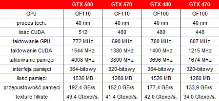 Porównanie czterech najwyższych modeli GeForce'ów prezentuje się następująco: