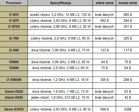Odświeżenie dosięgnęło zarówno modeli desktopowych, mobilnych, do netbooków, jak i serwerowych. Na szczególną uwagę zasługuje 48-procentowa obniżka w przypadku modelu Core i7-870, który będzie teraz kosztować 294 dolary. Wcześniej trzeba było za niego zapłacić około 562 dolary.
