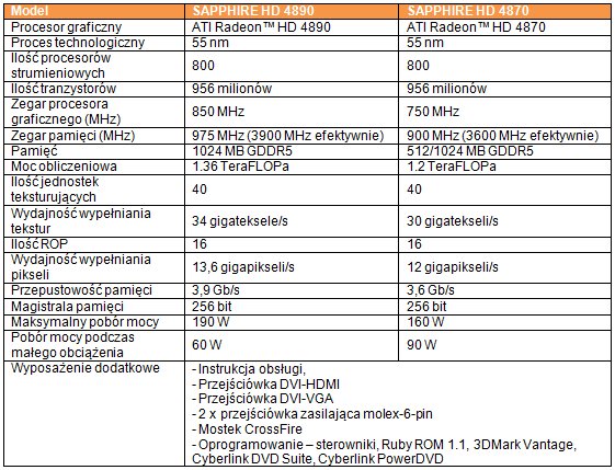 Porównanie specyfikacji podstawowej wersji HD 4890 do 4870: