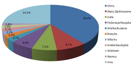 Listę dziesięciu krajów, z których pochodzi najwięcej prób infekcji otwierają Chiny (39,4 proc.). Na dalszych miejscach znalazły się między innymi: Stany Zjednoczone i Rosja. Na liście nie ma Polski.