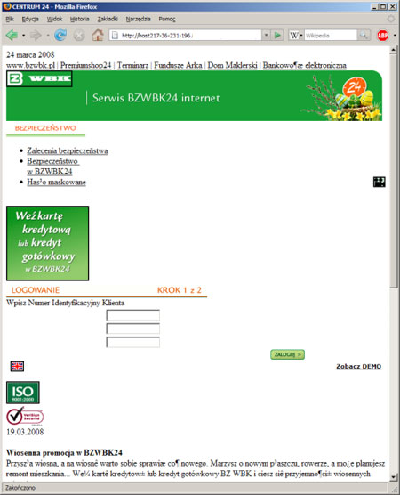 Po zaledwie dwóch miesiącach przerwy po sieci znów krążą e-maile próbujące wyłudzić dane klientów banku BZ WBK.