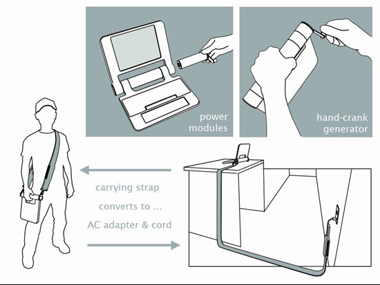 Unikalną cechą tego laptopa będzie możliwość generowania prądu ręczną korbką... Komputer będzie w pełni funkcjonalny nawet w miejscach gdzie elektryczność nie jest doprowadzona. Najbiedniejsze kraje wraz z pomocą krajów rozwiniętych będą mogły zakupić laptopa dla każdego dziecka, stwarzając nowe możliwości zdobywania edukacji przez młodocianych.
