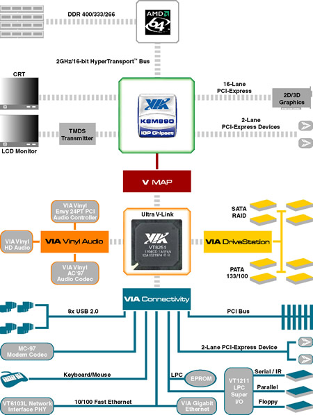 Firma VIA przedstawiła w piątek nowy chipset ze zintegrowanym układem graficznym S3 Graphics DeltaChrome zgodnym z DirectX 9.0 i Pixel Shader 2.0. VIA K8M890 obsługuje karty graficzne PCI Express x16 i korzysta z szyny danych Ultra V-Link. Zintegrowany układ DeltaChrome wspiera HDTV i potrafi wyświetlać obraz w rozdzielczości 1920x1080.
