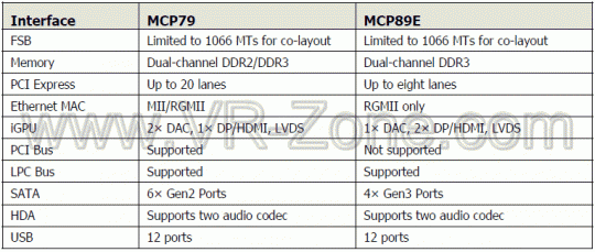 Nvidia MCP89E będzie jednocześnie odświeżoną i okrojoną wersją układu MCP79. Chipset ten został zaprojektowany do obsługi najnowszych procesorów Intela, które stanową część jego najnowszej platformy mobilnej – Centrino 2. Nowy układ współpracuje jedynie z pamięciami typu DDR3, gdy jego poprzednik – MCP79, wspierał również pamięci typu DDR2.
