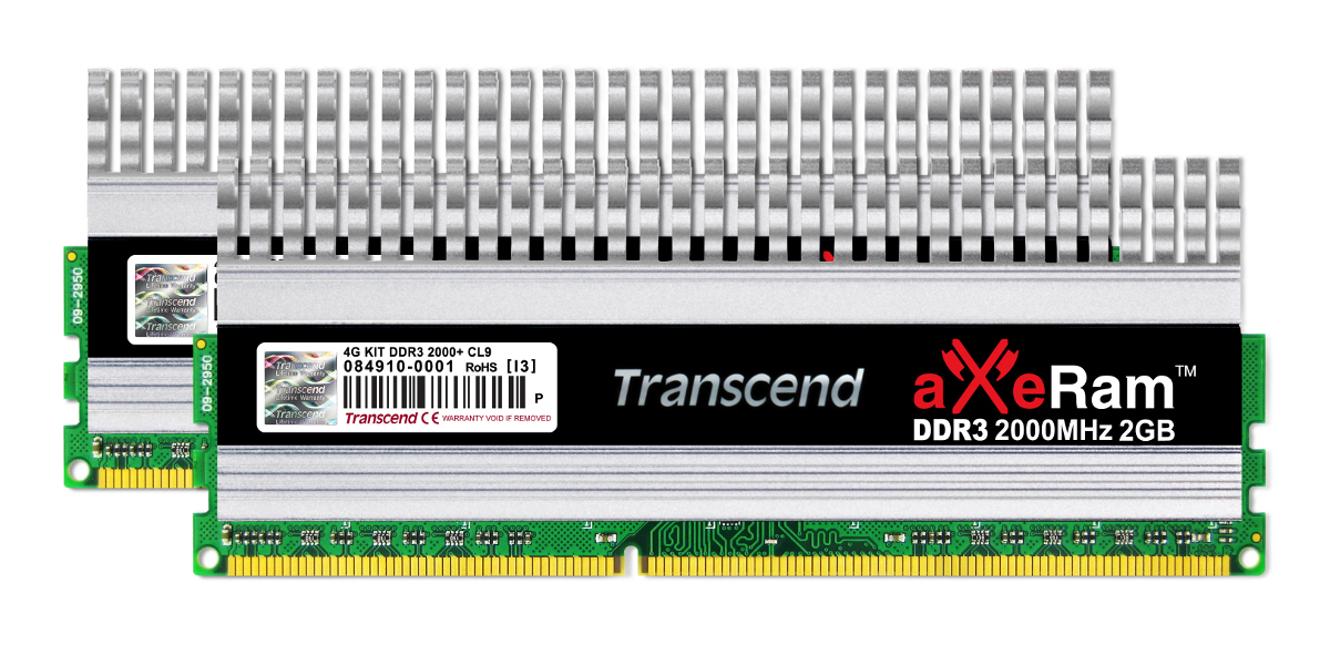 Najnowsze zestawy pamięci Transcend aXeRam DDR3-2000 taktowane są z częstotliwością 2000 MHz przy opóźnieniach 9-9-9-24. Układy zasilane są napięciem 1,65 V, a ich maksymalna przepustowość osiąga wartość 32 GB/s. Zestawy aXeRam DDR3-2000, jak zapewnia producent, przeznaczone są dla użytkowników, którzy wymagają od podzespołów dużego potencjału podkręcania.