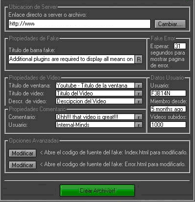 Aplikacja umożliwia tworzenie fałszywych stron serwisu YouTube. Następnie umieszczone zostaje na nich i za ich pomocą rozpowszechniane złośliwe oprogramowanie wszelkiego rodzaju (robaki, wirusy, trojany, adware itp.). Okno tego programu wygląda następująco: