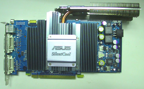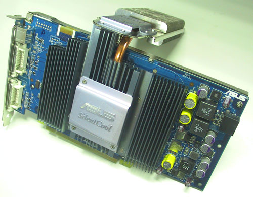 Firma ASUS przedstawiła kartę graficzną opartą na procesorze graficznym Radeon X800 z zainstalowanym nowym zestawem chłodzenia pasywnego. SilentCool to bezgłośny rozwiązanie korzystające z technologii heat-pipe (rurki termoprzewodzące). Karty z zamontowanym chłodzeniem Extreme AX800 Silencer posiadają unikalną konstrukcję - procesor graficzny znajduje się bowiem po drugiej stronie karty. Rozwiązanie to, doskonałe w swojej prostocie, umożliwia zastosowanie ogromnych radiatorów – z reguły nad kartą graficzną jest więcej miejsca niż pod nią. Ponadto firma pokazała kartę graficzną GeForce 7800 GT z pasywnym systemem chłodzenia, który konstrukcją przypomina produkty oferowane przez firmę Zalman.