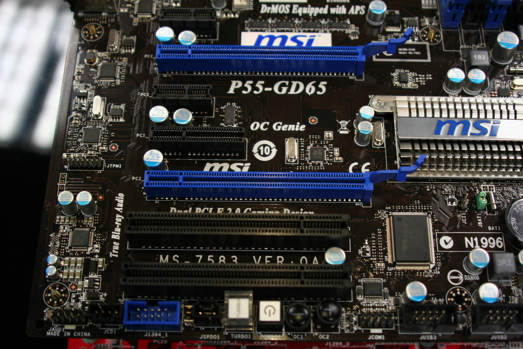W sieci pojawiły się pierwsze zdjęcia płyty głównej MSI P55-GD65 opartej na układzie logiki Intel P55 i wyposażonej w podstawkę LGA 1156, dedykowaną nadchodzącym procesorom Intel Core i5.