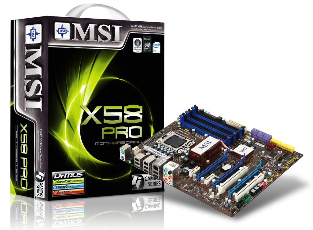 Płyta główna MSI X58 Pro umożliwia obsługę najnowszych procesorów Core i7 firmy Intel. Posiada szynę danych QPI (Quick Path Interconnect) oraz trójkanałową obsługę pamięci DDR3. Urządzenie zostało wyposażone w system DrMOS drugiej generacji, zapoczątkowany przez MSI w płytach głównych z chipsetem P45, a służący do poprawy wydajności energetycznej komputera (nawet do 93%).