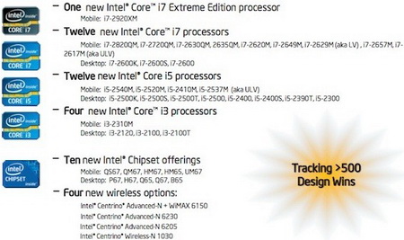 Procesory Sandy Bridge miały zadebiutować na rynku dopiero za dwa dni, czyli 5 stycznia. Jednak firma Intel postanowiła wszystkich zaskoczyć i już dzisiaj zdradziła szczegóły na temat nowych układów. W ofercie pojawi się aż 29 procesorów (15 mobilnych i 14 desktopowych) oraz 10 chipsetów (5 mobilnych i 5 desktopowych).