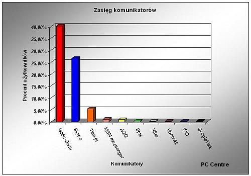 Badanie objęło również komunikatory najczęściej używane przez Polskich internautów. Tu zaskoczenia nie ma – niezmiennie od wielu lat najchętniej korzystamy z Gadu-Gadu. Korzysta z niego 40 proc. internautów. Drugim chętnie używanym komunikatorem jest Skype – 26,6 proc., natomiast daleko w tyle jest Tlen.pl – 5,34 proc. Dziesiątkę zamyka GoogleTalk – 0,11 proc.