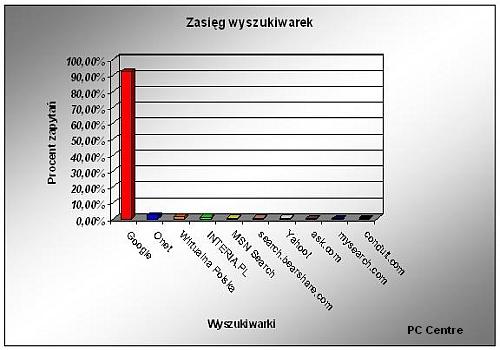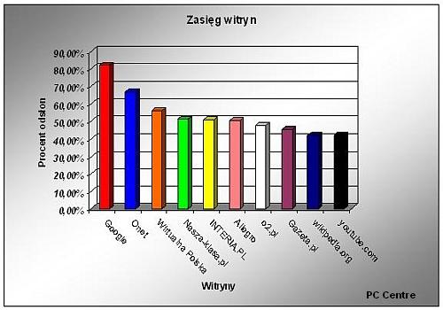 Pod względem liczby odwiedzających niekwestionowanym liderem pozostaje Google. Informacji przez tę wyszukiwarkę poszukuje 4 z 5 polskich internautów, czyli ponad 12 milionów użytkowników w ciągu miesiąca (zasięg 81,93 proc). Onet gromadzi 10 milionów odwiedzających miesięcznie (66,78 proc), natomiast Wirtualna Polska – 8 milionów osób (56,08 proc). Na czwartym miejscu znalazła się Nasza-klasa.pl z zasięgiem 51,11 proc., a dziesiątkę zamyka youtube.com – 42,00 proc.