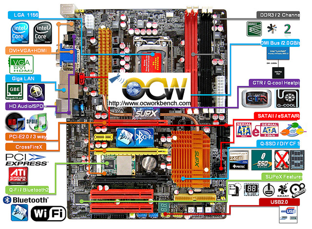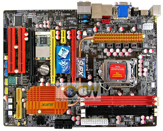 Płyta główna Supox AP55+ GTR została oparta na układzie logiki Intel P55 i posiada podstawkę LGA 1156, przeznaczoną do nadchodzących procesorów Core i5 (Lynnfield/Havendale) firmy Intel. Urządzenie zdolne obsłużyć do 16 GB pamięci wyposażono w cztery sloty na dwukanałowe pamięci RAM typu DDR3-1333. Znajdziemy tutaj trzy sloty PCI Express x16 v2.0a (działające w konfiguracji: X16 lub X8+X8 bądź X8+X8+X4), dwa PCI v2.3 i jeden PCI Express x1. Supox AP55+ GTR wspiera technologię CrossFireX, jednak na dzień dzisiejszy niewiadomo, czy technologia SLI nie będzie również wspierana.