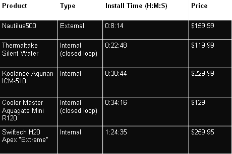 Czas instalacji chłodzenia, porównanie z konkurencją
