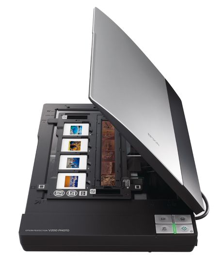 Skaner Epson Perfection V200 Photo jest stosunkowo szybki ( w tym szybki preskan). Posiada przystawkę do skanowania materiałów przeźroczystych, jak klisze i slajdy