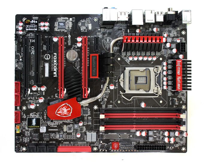 Foxconn Inferno Katana to produkt największego producenta sprzętu komputerowego OEM. Przeznaczony jest dla osób stawiających na pierwszym miejscu na wrażenia wizualne i estetyczne. Płyta została oparta o chipset P55, posiada bardzo stabilną, hybrydową sekcję zasilania, która bez problemu poradzi sobie z najbardziej wymagającymi procesorami dedykowanymi podstawce LGA1156. W komplecie z płytą otrzymujemy, oprócz sterowników, płytę z autorskim oprogramowaniem Foxconna. Płyta posiada 3 sloty PCI-E x16, wspiera tryby CrossFireX i QuadSLI. Na tylnym panelu znajduje się 8 gniazd USB. Płyta jest podświetlana różnobarwnymi diodami. Cena Foxconna Inferno Katana oscyluje w granicach 750 zł.