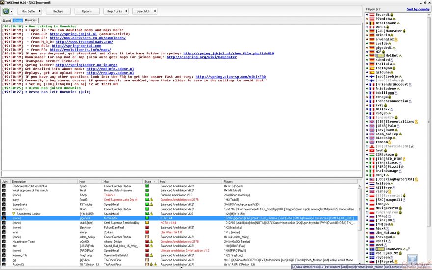 Do gry logujemy się za pomocą okna dialogowego TASClient, gdzie wybieramy serwer z mapą, do którego chcemy dołączyć. Wewnątrz zbierają się gracze tworząc zespoły. Następnie host rozpoczyna starcie i wszyscy przenosimy się do gry. Tam wybieramy pozycje startową i rozpoczynamy bitwę z jedną jednostką. Jest to wyposażony w specjalne możliwości Commander.