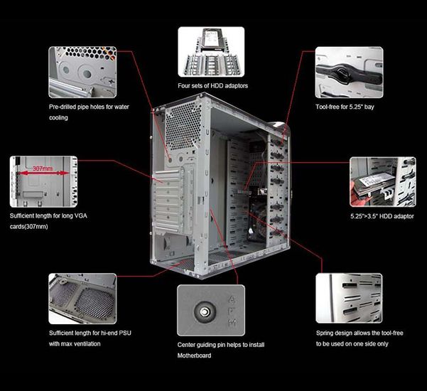 | Ilość miejsc na dodatkowe wentylatory: | 3 szt. |