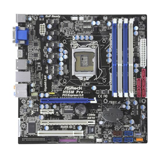 ASRock H55M Pro to płyta główna formatu mATX przeznaczona dla procesorów Intel Core, która posiada zintegrowaną kartę graficzną, dźwiękową oraz sieciową.
