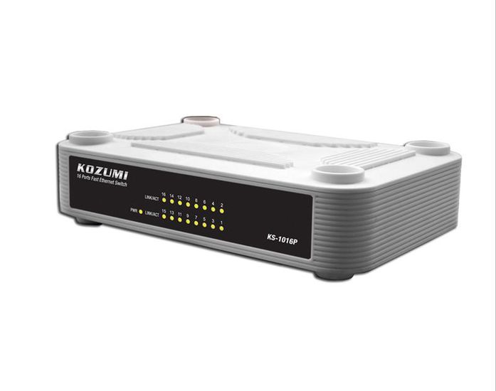 Kozumi KS-1016P to przełącznik sieciowy wyposażony w 16 portów 10/100 Mbps, który przeznaczony jest dla segmentu SOHO.