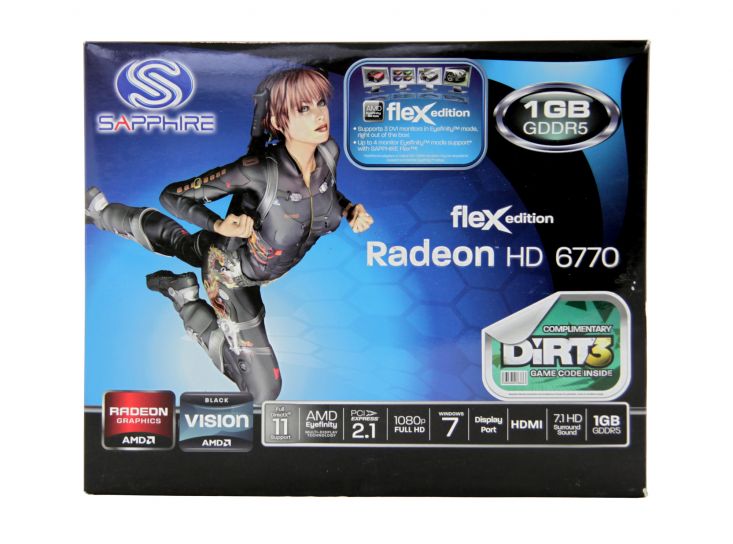 Sapphire Radeon HD 6770 fleX to karta graficzna znanego producenta sprzętu komputerowego oparta o układ firmy AMD o nazwie kodowej Juniper XT. Producent zaopatrzył tą niewielką konstrukcję w sporej wielkości - jak na jej rozmiary - wydajny układ chłodzenia oparty o jeden, umieszczony centralnie 92-mm wentylatory i aluminiowy radiator z miedzianym rdzeniem. Taktowanie karty nie różni się od modelu referencyjnego i wynosi 850 MHz dla rdzenia graficznago oraz 1200 MHz dla pamięci VRAM. Karta posiada całkiem dobry potencjał OC. Producent objął produkt 24-miesięcznym okresem gwarancyjnym. Cena karty wynosi obecnie około 500 zł.