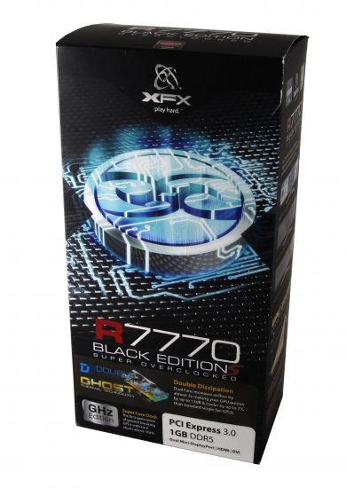 XFX Radeon HD 7770 Black Edition S to karta graficzna znanego producenta sprzętu komputerowego oparta o najnowszy układ firmy AMD o nazwie kodowej Cape Verde XT. Jest to konstrukcja niereferencyjna, producent wyposażył ją w duży - jak na rozmiary karty - cooler wyposażony w heatpipe'a oraz dwa 80-mm wentylatory. Karta pracuje z fabrycznie zwiększonymi zegarami, jej taktowanie wynosi odpowiednio 1120 MHz dla rdzenia graficznago oraz 1300 MHz dla pamięci VRAM. Konstrukcja pomimo tego, że jest już mocno podkręcona charakteryzuje się dość dobrymi możliwościami OC. Całkiem dobrze wypada także pod względem kultury pracy. Producent objął produkt 24-miesięcznym okresem gwarancyjnym. Cena karty wynosi obecnie około 600 zł.